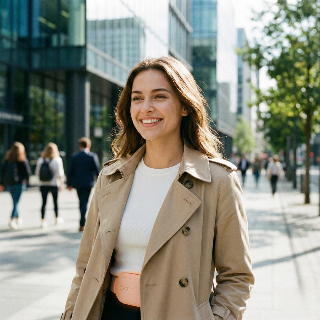 Portable et discret, il s’adapte parfaitement à votre ventre ou à votre bas du dos pour un confort optimal, où que vous soyez.